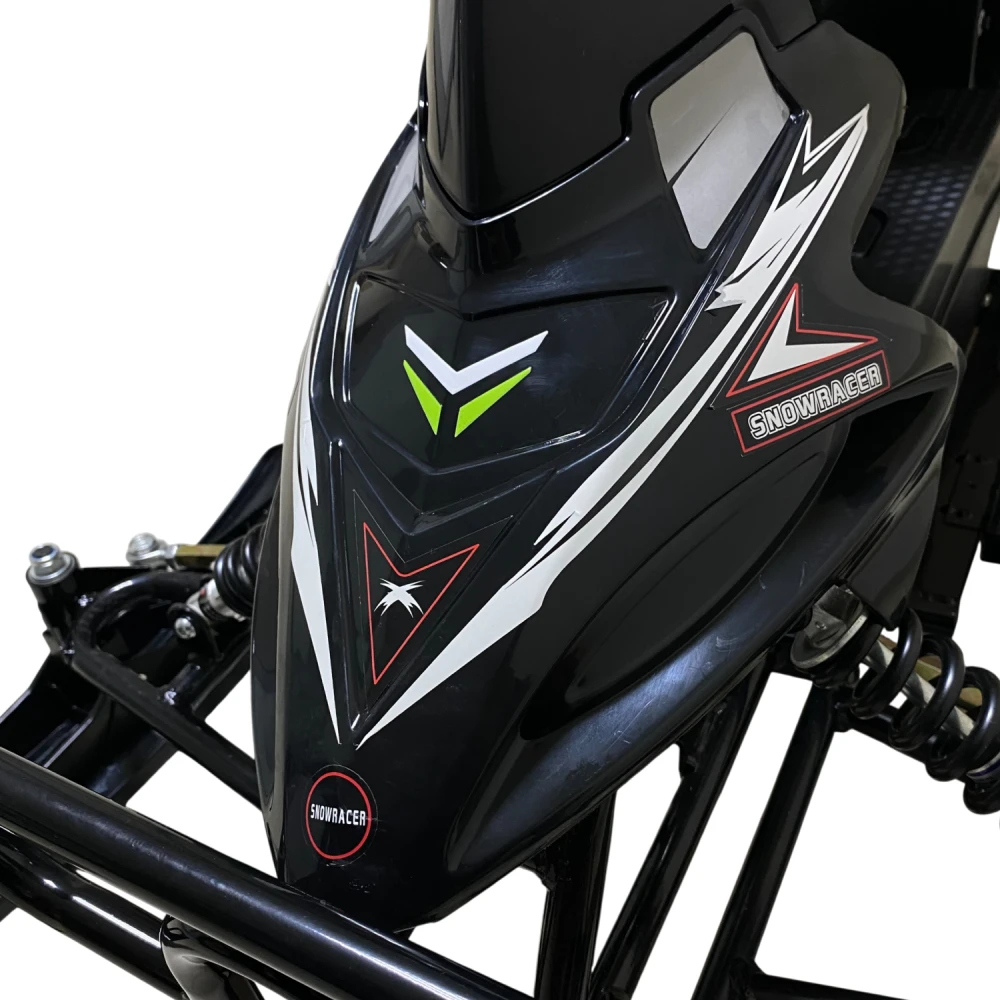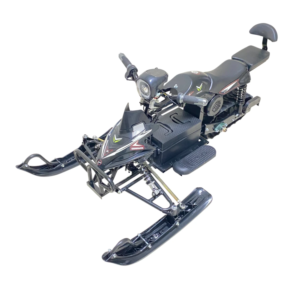 Снегокат оборудован эффективной тормозной системой и амортизаторами, которые обеспечивают безопасность при езде. Освещение яркое и заметное, что повышает видимость в сумерках и вечером. Электроника оснащена системами защиты аккумулятора от перегрева и короткого замыкания.