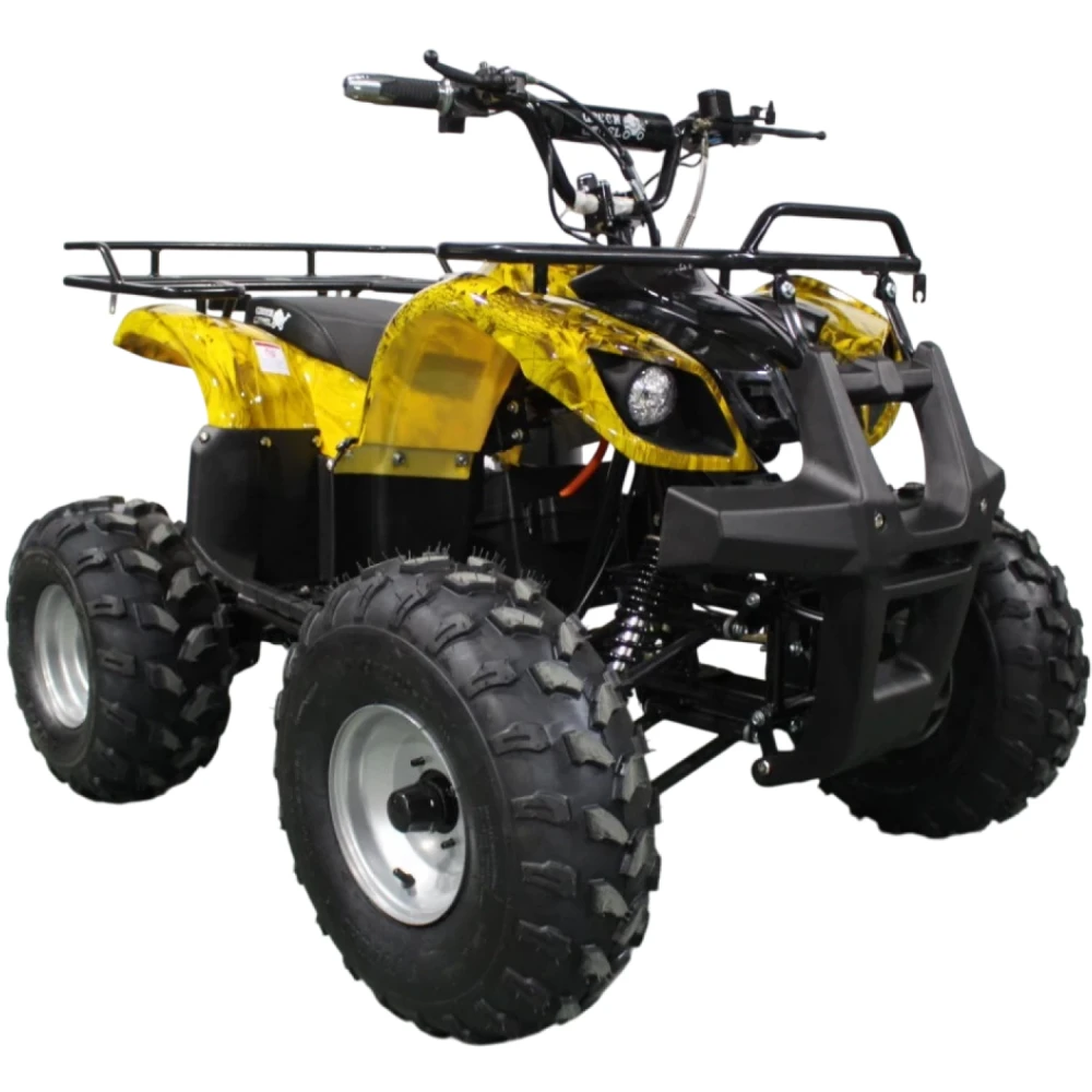 Данный квадрик обладает пониженной передачей, барабанными передними тормозами, а сзади - ножным дисковым гидравлическим тормозом. У него тихий и мягкий ход из-за отсутствия цепной передачи и наличия дифференциала.