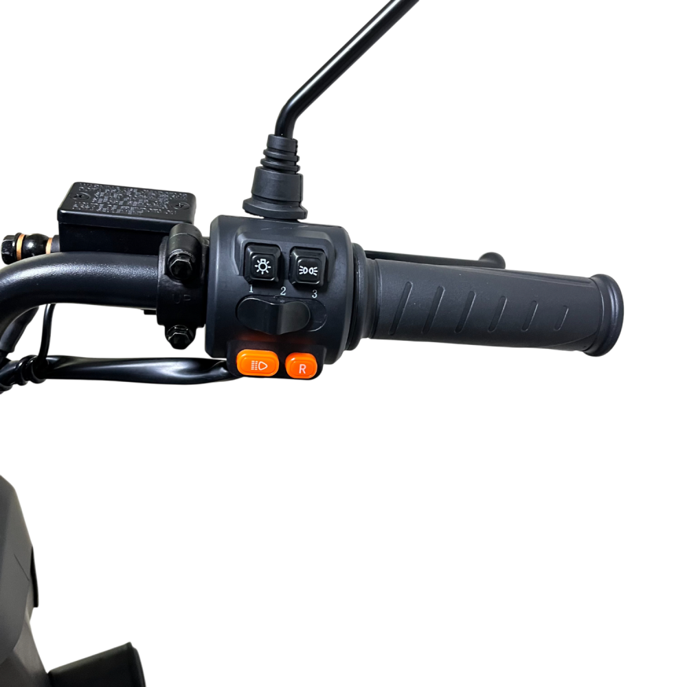 В стандартной комплектации есть гидравлическая подвеска, дисковые тормоза, LED-освещение и информативный дисплей. 12-транзисторный контроллер обеспечивает плавную работу и высокую надёжность электроники. При желании вы можете снять кофр и он превращается в скутер.