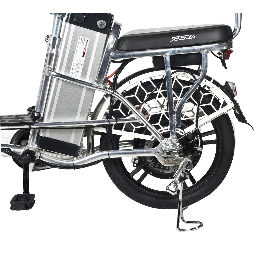 Электровелосипед Jetson Pro Max (60V13Ah) (гидравлика)– удобная техника с отличными параметрами комфорта понравилась семейным парам и лицам, проживающим в дачной местности. Модель весом 28 кг и грузоподъемностью 200 кг рассчитана на водителя и пассажира. Технические параметры лучшие в своей линейке. При мощности движка 500 Вт велогибрид способен разогнаться до 50 км/час. Емкости батареи хватает на городской вариант техники рассчитанный на водителя и пассажира. Удобный для 100 км пути на одной подзарядке. Приобрести электровелосипед для ежедневной езды предлагает наш интернет-магазин.