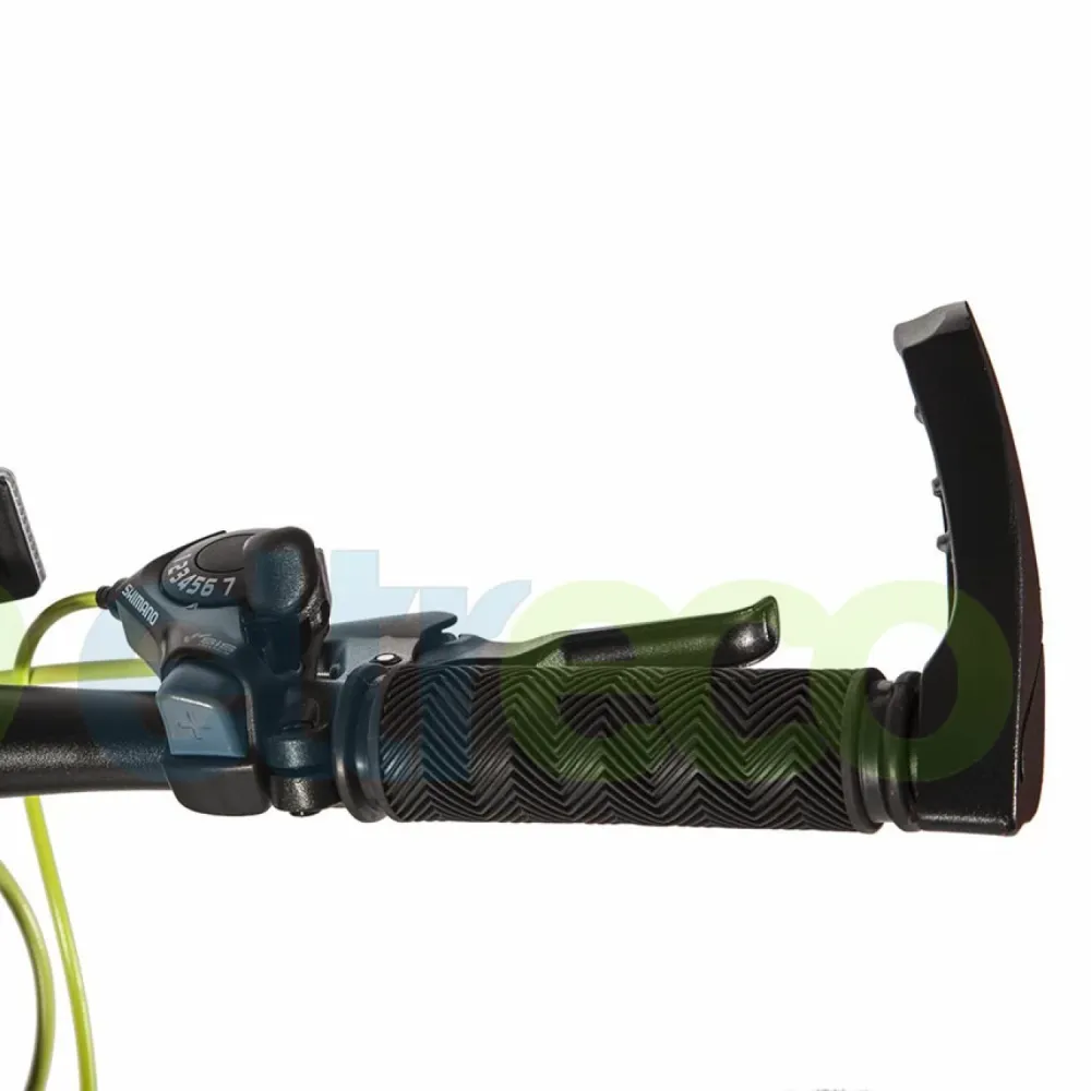 Велогибрид предназначен для активных райдером массой тела до 110 кг. Может быть использован в качестве спортивного средства для контроля за физической формой тела, так и для ежедневного время провождения. Конструкция модели изготовлена из инновационного алюминия. Рама – высокая, не складная. Электродвижок мощностью 250 Вт способен развивать приличную скорость – до 35 км час и преодолевать дистанцию до 50 км. Батарея размещена в защитном боксе, на раме, не мешает райдеру во время движения.