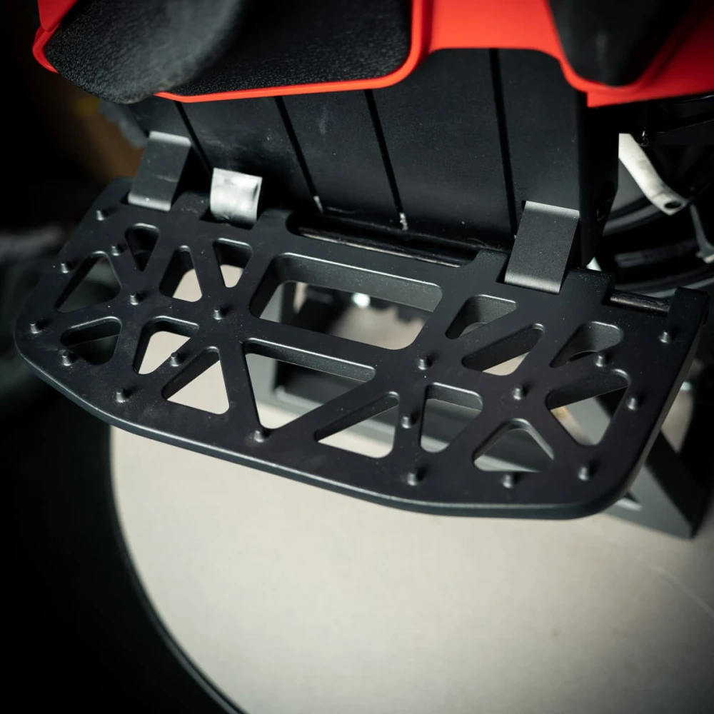 Адаптирование подвески к разным поверхностям допускает езду по бездорожью и другой проблематичной местности. Отлично сцепляемые с поверхностью колеса – накатистые и устойчивые. Педальная часть – прошипованная, нескользящая, имеются регулируемые подушки–упоры.
