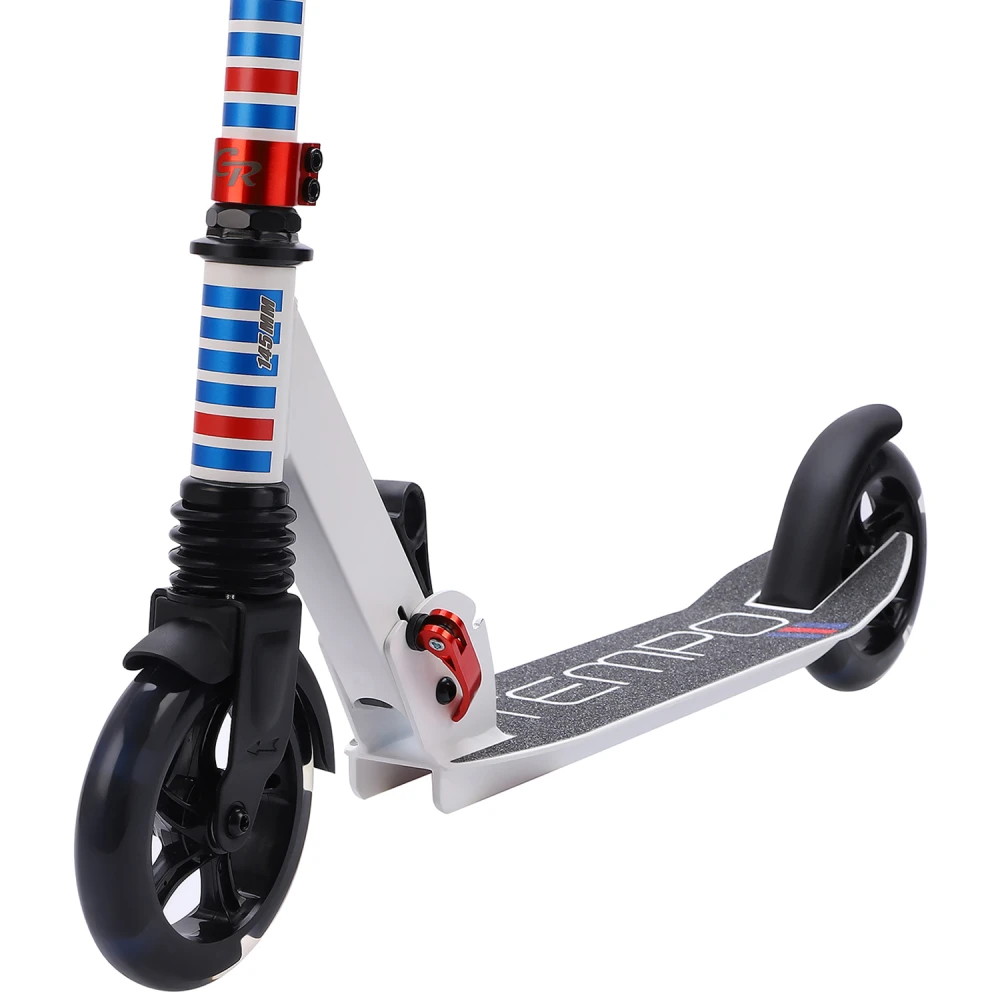 Городской самокат City Ride Tempo бело-красный – детская техника максимальной грузоподъемностью до 50 кг может быть куплена родителями в качестве первого транспортного средства. Эксплуатация самоката покажет, что такое скорость, опасность маневрирования, принятие важных решений и уважение других участников движения.