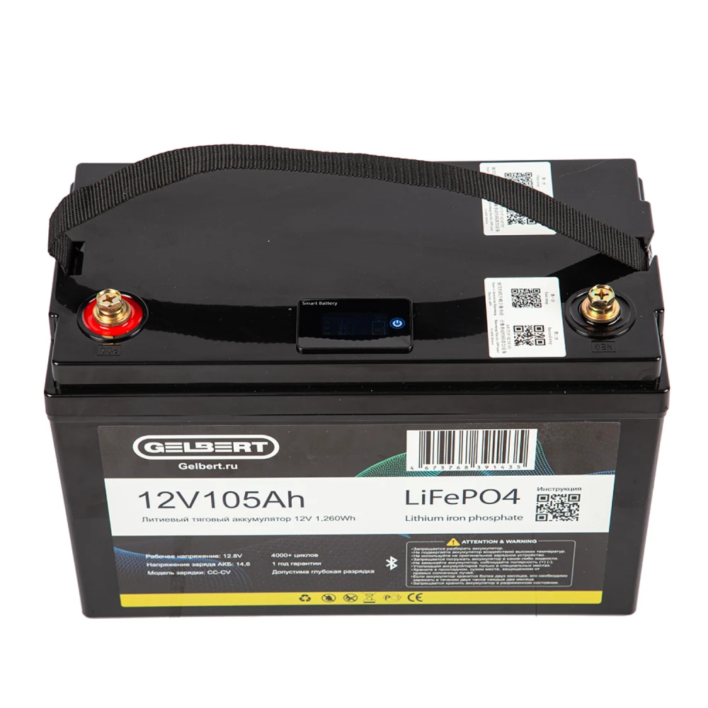 Аккумулятор литиевый тяговый Gelbert LiFePO4 (12V/105Ah/100А/1,260Wh) Bluetooth